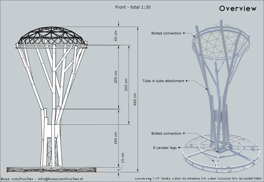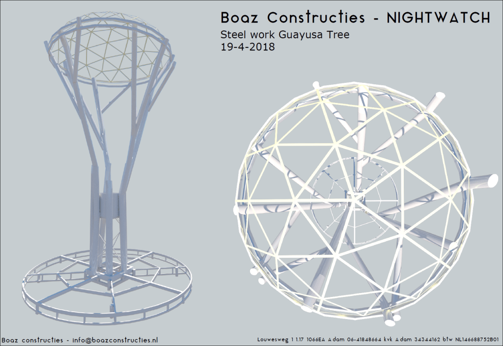 Since the tree was part of the tent construction the design has been calculated by a constructor to ensure safety.