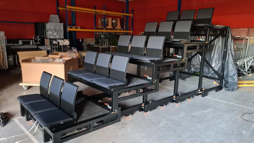 An example is this collapsible grandstand built for the DeLaMar West venue in 2021.